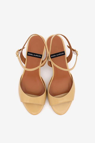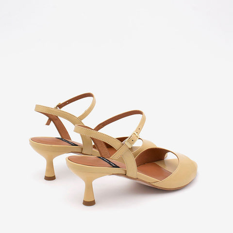 The  style is a strappy sandal with a strap closure, secured at the ankle with a buckle. A comfortable dress shoe with a slim 6.5 cm heel.