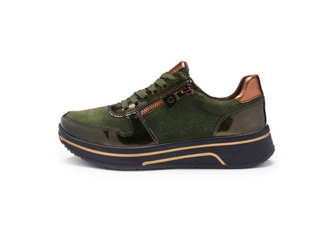 Easy going through the day with this ultra-light and sporty sneaker by ara. The leather upper is silky soft and encloses perfectly the foot. Thanks to the comfortable width, your feet have got enough space. The soft all around padding offers even more comfort. Thanks to the combination of lacing and zip fastener the shoe can easily be put on and taken off and can be perfectly adapted to your needs. On the inside, the shoe is equipped with soft terry cloth which ensures a pleasant foot climate and absorbs moisture. The removable footbed is also covered with terry cloth and therefore dries quickly.