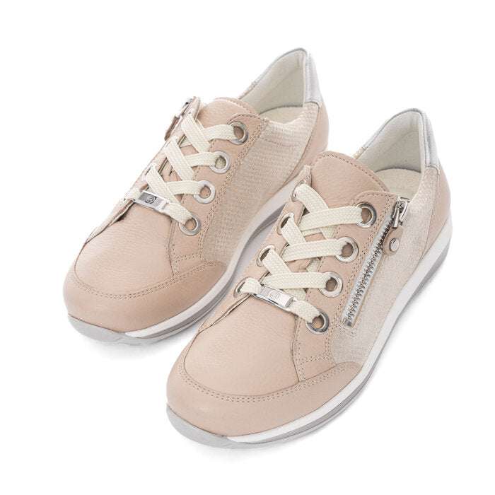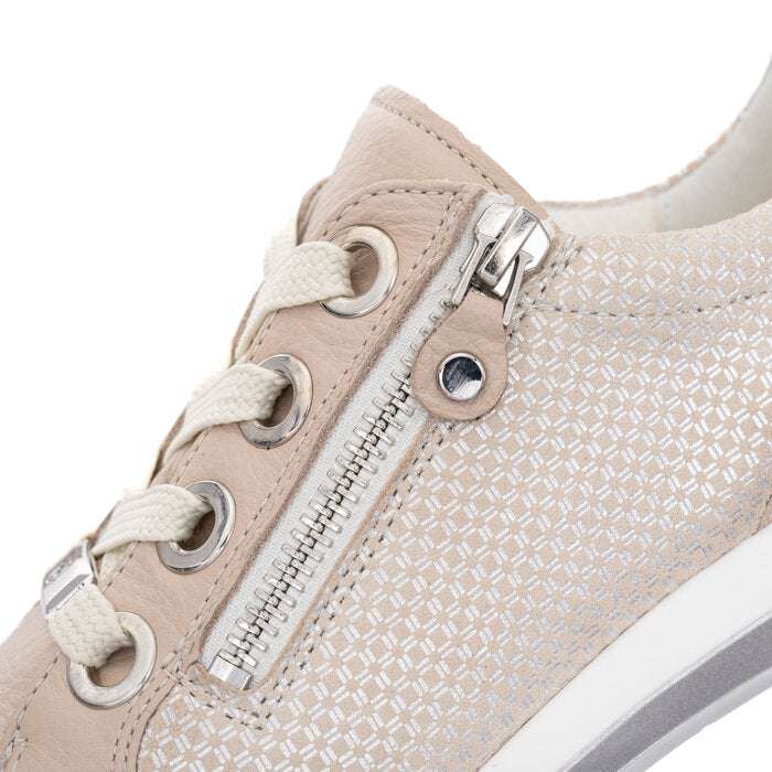 The high-quality lace-up shoe with a modern look is particularly comfortable. Soft leather was used as the upper material, but special attention should also be paid to the interior: terrycloth based on bamboo fibre absorbs a lot of moisture and dries quickly. The soft round padding prevents the formation of pressure points. The removable footbed can be easily replaced with your own insoles. Thanks to the comfortable Highsoft function made of soft upper material and a sole with a special foam insert in the ball of the foot area, a pleasant feeling of well-being is ensured with every step. It gently supports the arch of the foot and offers a high degree of flexibility. With this model, the zip and laces provide the best of both worlds: reliable support and easy handling. Thanks to its H-width, the lace-up is suitable for wide feet