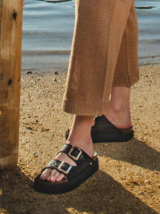 - Made in: Spain. Open heel espadrilles, with a heel strip that carries an elastic piece for greater support. Toe open. Mixed leather and fabric interior. Jute wedges, 7 cm back height (2 cms in the front). Made in Spain.