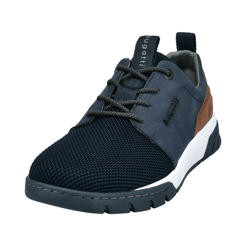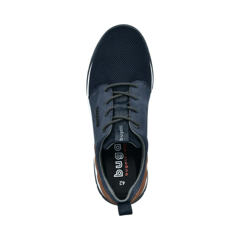 Comfort is what defines these bugatti men's sneakers, due to their EVA insoles with memory foam technology. The textile material used on the uppers makes them breathable. In a dark blue and brown color mix, they will match most of the casual outfits in your wardrobe.