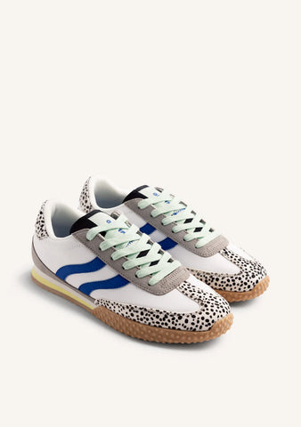 Sneakers with coloured accents and with a Dalmatian print. Granulated sole.
