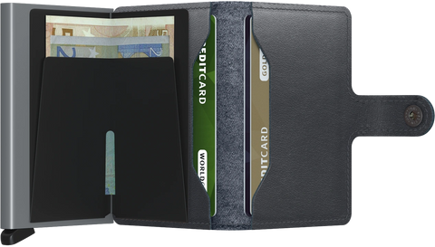 Small in size and surprisingly large in storage capacity, the Miniwallet combines the best of both worlds. The exterior holds banknotes, receipt and cards, while the aluminium Cardprotector allows you to slide out cards with one simple motion and protects them from bending, breaking and unwanted wireless communication.