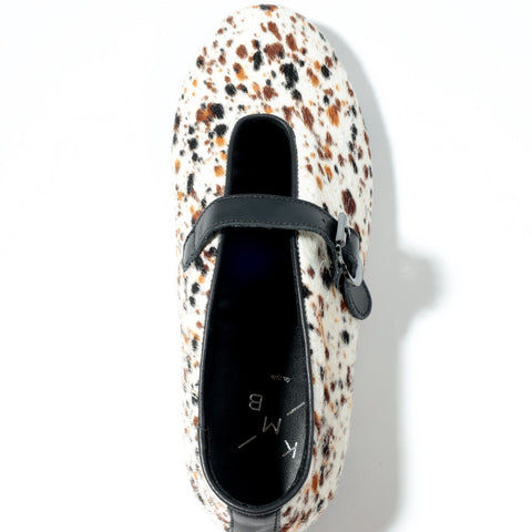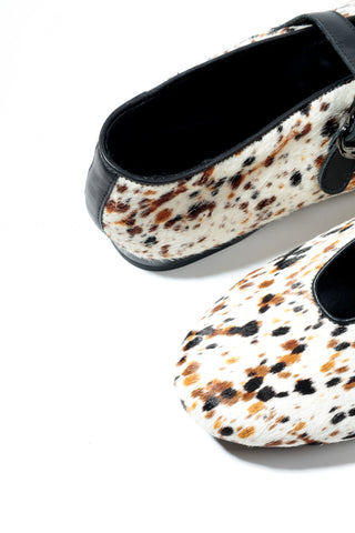 Liza is a playful take on the Mary Jane, blending a soft ballet-inspired silhouette with bold texture. Crafted from cow-print hair-on leather, it features a contrasting black leather strap and silver buckle across the instep. The round toe provides natural space and comfort for your toes, while the light, flexible sole and padded insole make every step easy and comfortable. Pair Liza with denim, tailored trousers, or flowy neutrals for an effortlessly cool everyday look.