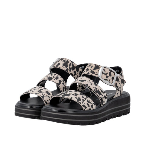 A shoe for all occasions! The black-white remonte wedge sandals made of suede leather are an absolute must-have in every shoe collection. Thanks to a bright hook-and-loop fastener, these sandals can be comfortably closed and individually adjusted. The fashionable animal print adds a stylish touch. The Lite 'n Soft technology allows for the combination of a lightweight outsole and a soft leather-insole. This shoe is available up to size 45. Fashion at its best!