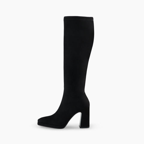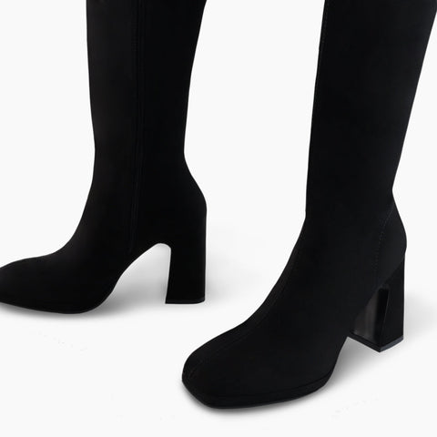 LODI women´s heeled boots in stretch faux suede textile fabric. Featuring central seam detailing. . With a 10 cm square heel. Thin semi-square toe. Interior textile lining. Including a new gel sole for comfort in every step.