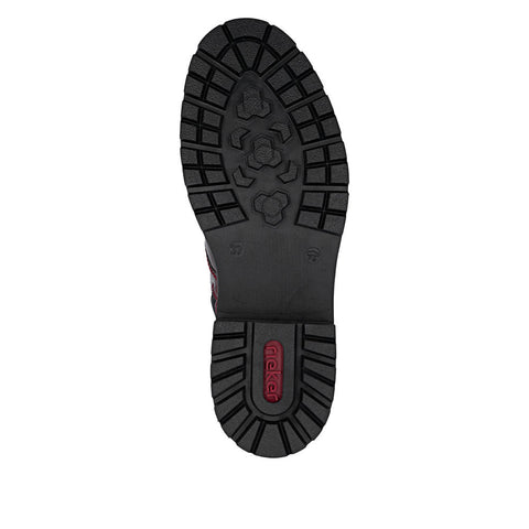 Lighter, more flexible, more space, more shock absorption. Our shoes are constructed in such a way that every step is like wellness for your feet!  Combining Rieker's Anti-Stress technology for essential foot support and a padded footbed for optimum shock absorption, this boot promises luxurious comfort throughout the day. A must-have statement piece this season