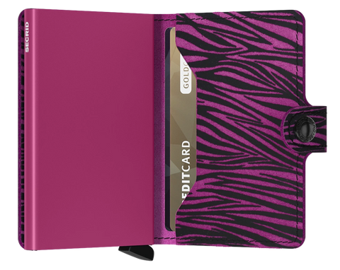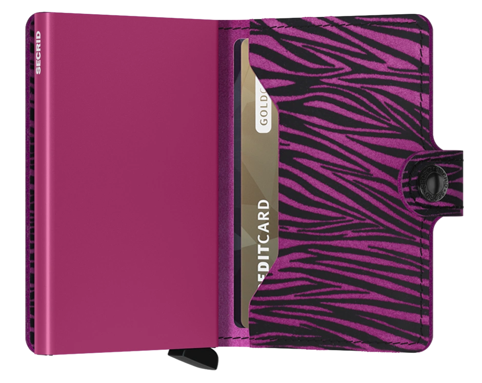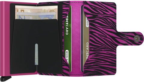 Small in size and surprisingly large in storage capacity, the Miniwallet combines the best of both worlds. The exterior holds banknotes, receipt and cards, while the aluminium Cardprotector allows you to slide out cards with one simple motion and protects them from bending, breaking and unwanted wireless communication.