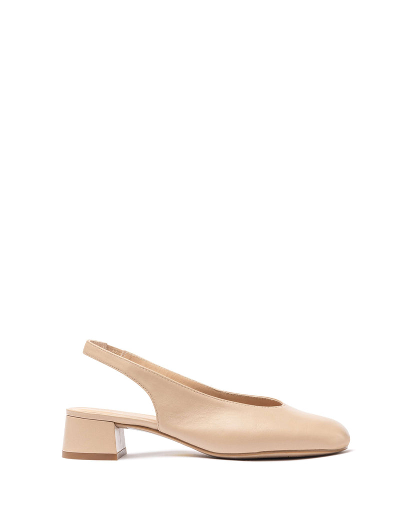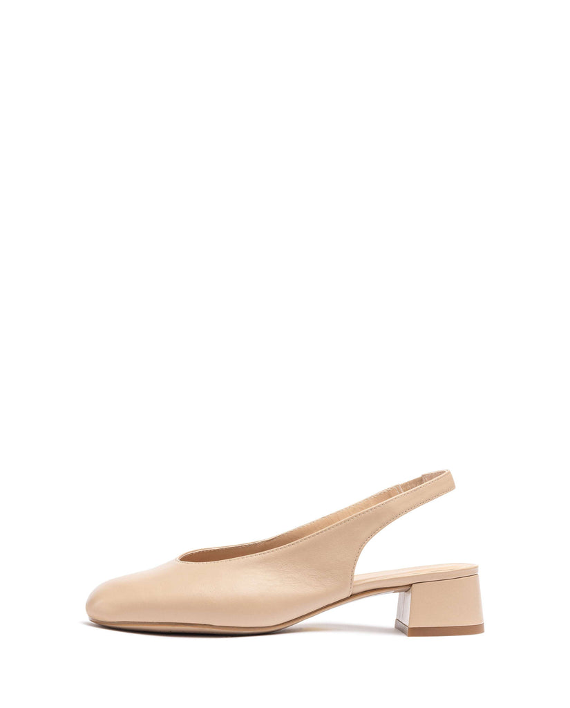 - Made in: Europe, Round toe slingback shoe made in leather.3cm high heel covered in a matching tone of leather. Leather edging and bow. Light, flexible and non-slip rubber sole
