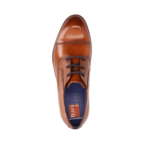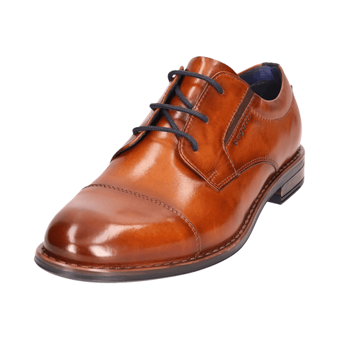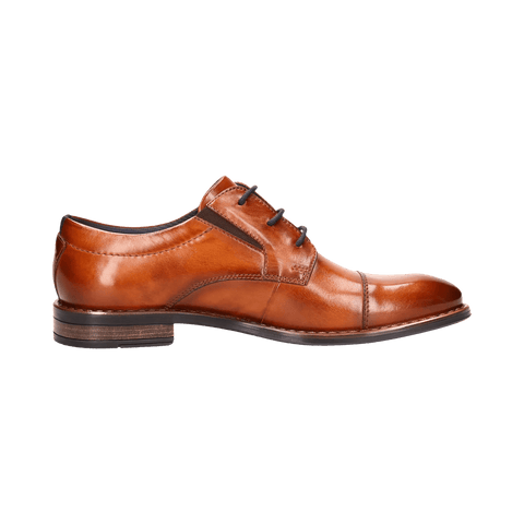 Crafted from supple leather with smooth texture, these cognac brown shoes with cap-toe trim will improve your business wear. Ensuring enhanced comfort and with flexible properties, these office derby shoes are built with a wide form, designed with elastic for easy slip into and they have soft flex function with featherlike insoles. They require simple maintenance due to care impregnated uppers.
