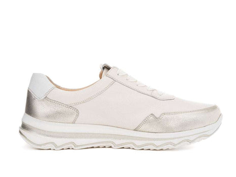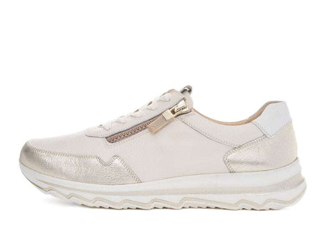Easy going through the day with this ultra-light and sporty sneaker by ara. The leather upper is silky soft and encloses perfectly the foot. Thanks to the comfortable width, your feet have got enough space. The soft all around padding offers even more comfort. Thanks to the combination of lacing and zip fastener the shoe can easily be put on and taken off and can be perfectly adapted to your needs. On the inside, the shoe is equipped with soft terry cloth which ensures a pleasant foot climate and absorbs moisture. The removable footbed is also covered with terry cloth and therefore dries quickly