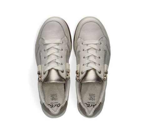 The sporty leather sneakers by ara have wide laces for perfect adjustment as well as two zip closures on the side with which the shoes can be put on and taken off quickly and easily. Thanks to the soft all-round padding, unpleasant pressure points are prevented. The lining made of terry cloth also leaves nothing to be desired. The natural material ensures a comfortable fit and a good foot climate as it dries very quickly. The footbed, which is also covered with terry cloth, is removable and can be replaced at any time.
