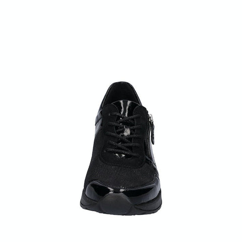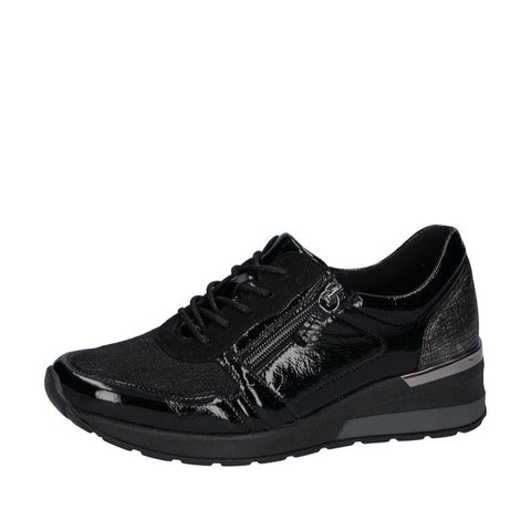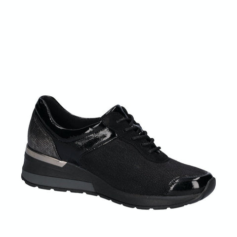 Crafted with a supple leather upper and a cushioned removable insole for added support, this trainer ensures all-day comfort. The padded ankle and heel collar enhance comfort levels, while the lace-up fastening and zip closure offer adjustable fit options. Not just stylish, the high wedge heel adds a touch of height to your casual looks while providing superior support