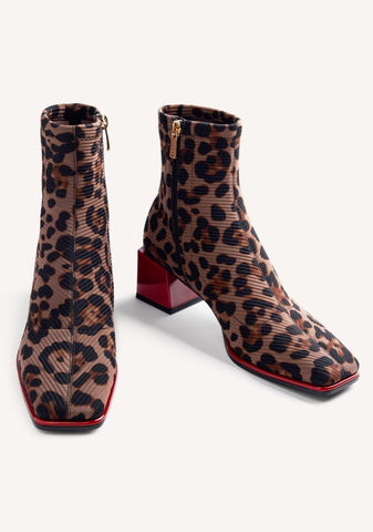 Step into bold style with these animal print ankle boots featuring a sock-like shaft that hugs your leg with soft elasticity. The block patent heel adds a shiny contrast, while the padded insole keeps your feet comfy all day. A handy inner zip makes them easy to slip on, and the square toe adds a modern twist. Crafted with an elastane upper, polyester lining, leather insole, and sturdy rubber sole, these boots are as fun as they are fierce. Heel height: 5 cm—perfect for strutting with confidence!
