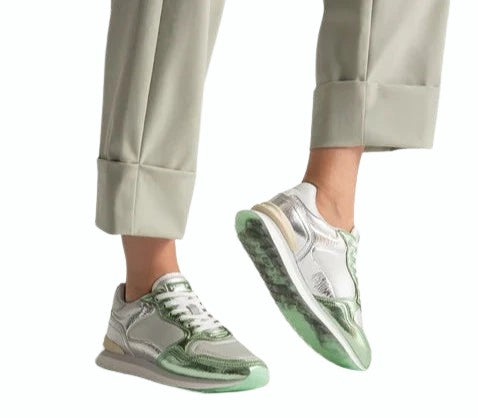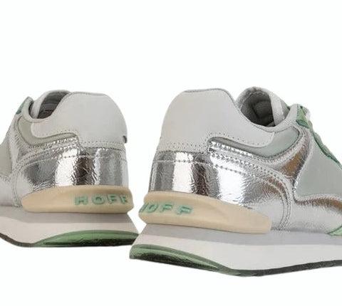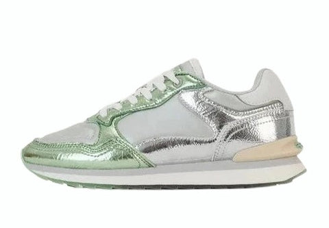 The iconic City shines like never before with the Metallics collection. A twist on our classic trainers: a touch of crackle green against the iridescent silver tone. A quilted effect on the front of the silver fabric and a dose of comfort thanks to the memory foam insole. Contrast heel stabiliser and brand logo add a unique touch. Leather Working Group-certified leather heel counter. Don't miss the essence of each shoe on the sole. Take your looks to the next level with the IRON.