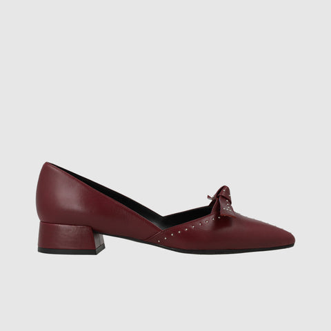 Tone-on-tone leather bow detail, a basic that will add a touch to most of your looks. Designed with a wide leather heel of 2 cm in height. Pointed toe and rounded neckline. Lined interior in recycled polyester and leather insole. Includes new gel insole for greater comfort in every step. Made in Spain.