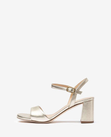- Made in: Europe,Metallic effect leather sandal with a square forepart of the sole. 6.5cm heel in a matching tone. An ankle strap that can be adjusted with the metal buckle. Leather sole. Perfect sandals for your summer days.