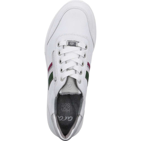 Easy going through the day with this ultra-light and sporty sneaker by ara. The upper leather is silky soft and encloses perfectly the foot. Thanks to the comfortable width, your feet have got enough place. The soft all around padding offers even more comfort. Thanks to the lacing, the shoe can be perfectly adapted to your needs. On the inside, the shoe is equipped with soft terry cloth, which ensures a pleasant foot climate and absorbs moisture. The removable footbed is also covered with terry cloth and therefore dries quickly. The sneaker has the proven HighSoft technology, so tired feet are a thing of the past. The colour and material mix gives the shoe a fashionable touch. This shoe is the ideal companion for all sporty women.