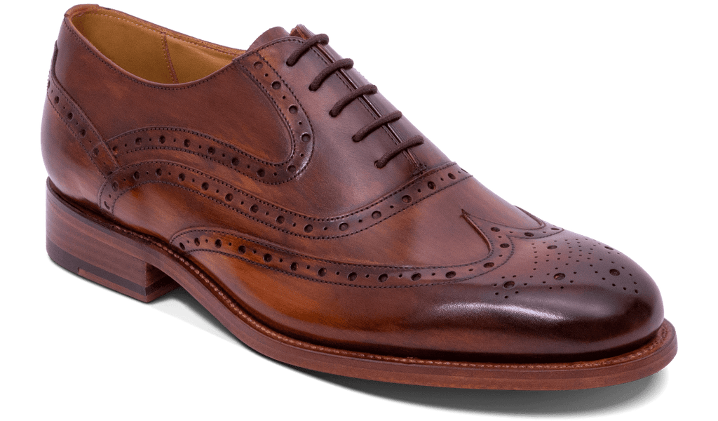 The brogue shoe is traditionally made up of multiple pieces - the upper leather which features decorative perforations also known as ‘broguing’. The brogue was traditionally worn as country footwear therefore the perforations were originally designed to allow the shoes to dry quicker when wet.