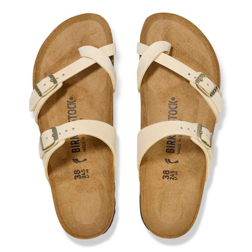 Jaunty and modern! The BIRKENSTOCK Mayari thong sandal stands out with its flowing look and brings together design and comfort. With its additional foam layer, the soft footbed offers extra comfort and pampers feet – all day long. The upper is made from high-quality, soft nubuck leather that boasts a natural, rustic appearance.