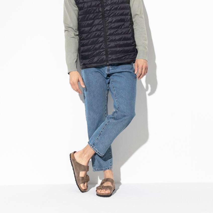 The BIRKENSTOCK Arizona is a genuine classic. This individually adjustable unisex two- strap sandal is now available in a casual version in oiled nubuck leather. The soft leather features an open selvage finish, emphasizing the handcrafted and natural look of these stylish sandals.