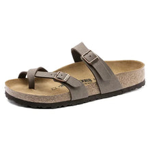 The BIRKENSTOCK Mayari thong sandal is a jaunty model with a toe loop. The impressive combination of design and wearability will see fashion-conscious men and women through the day with elegance and comfort. The upper is made from the skin-friendly, hard-wearing synthetic material Birko-Flor® in a sophisticated nubuck look which boasts a texture and color that could almost be mistaken for real leather.
