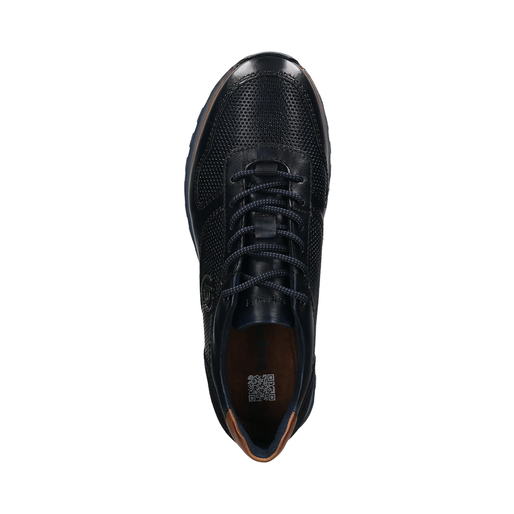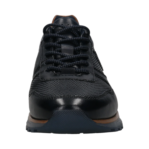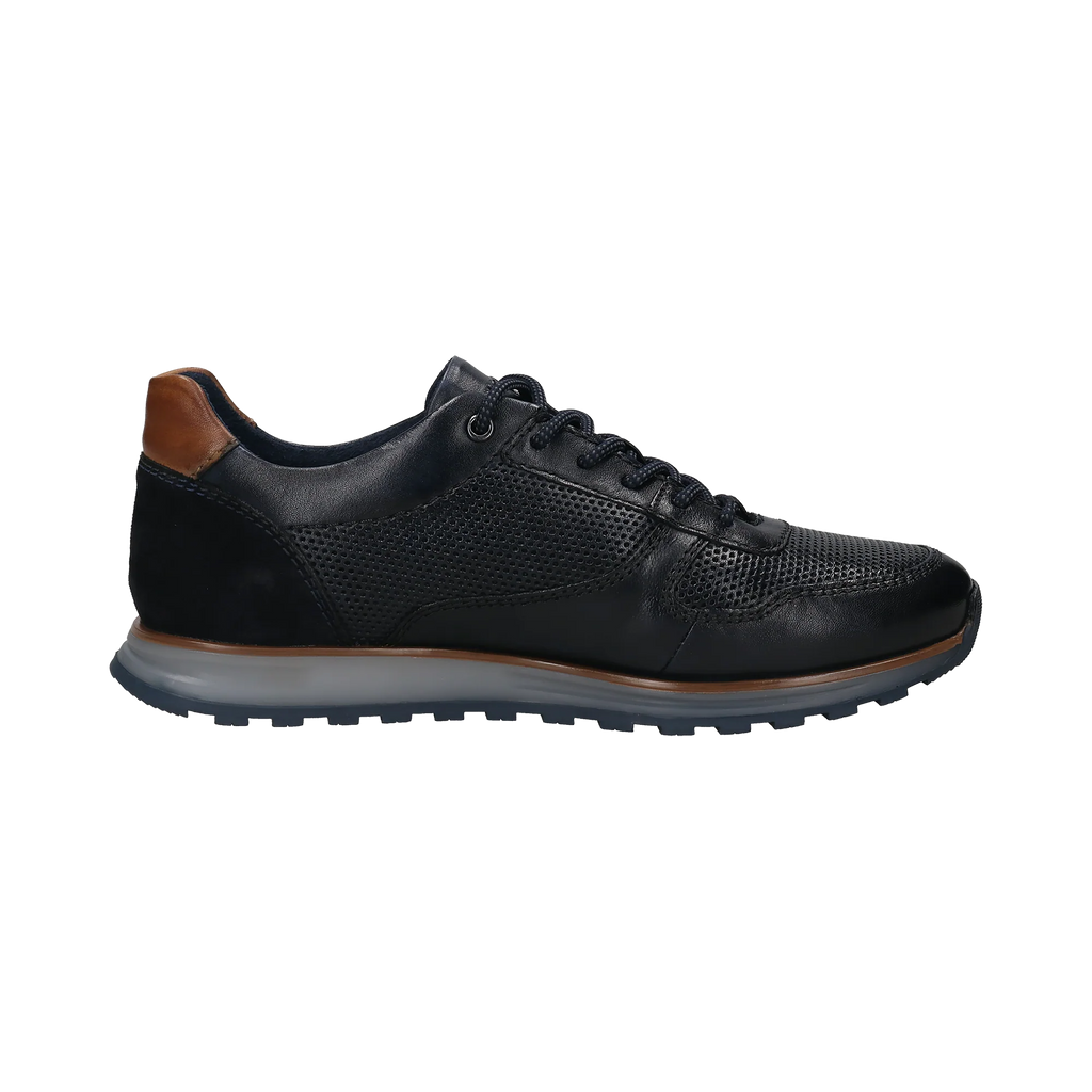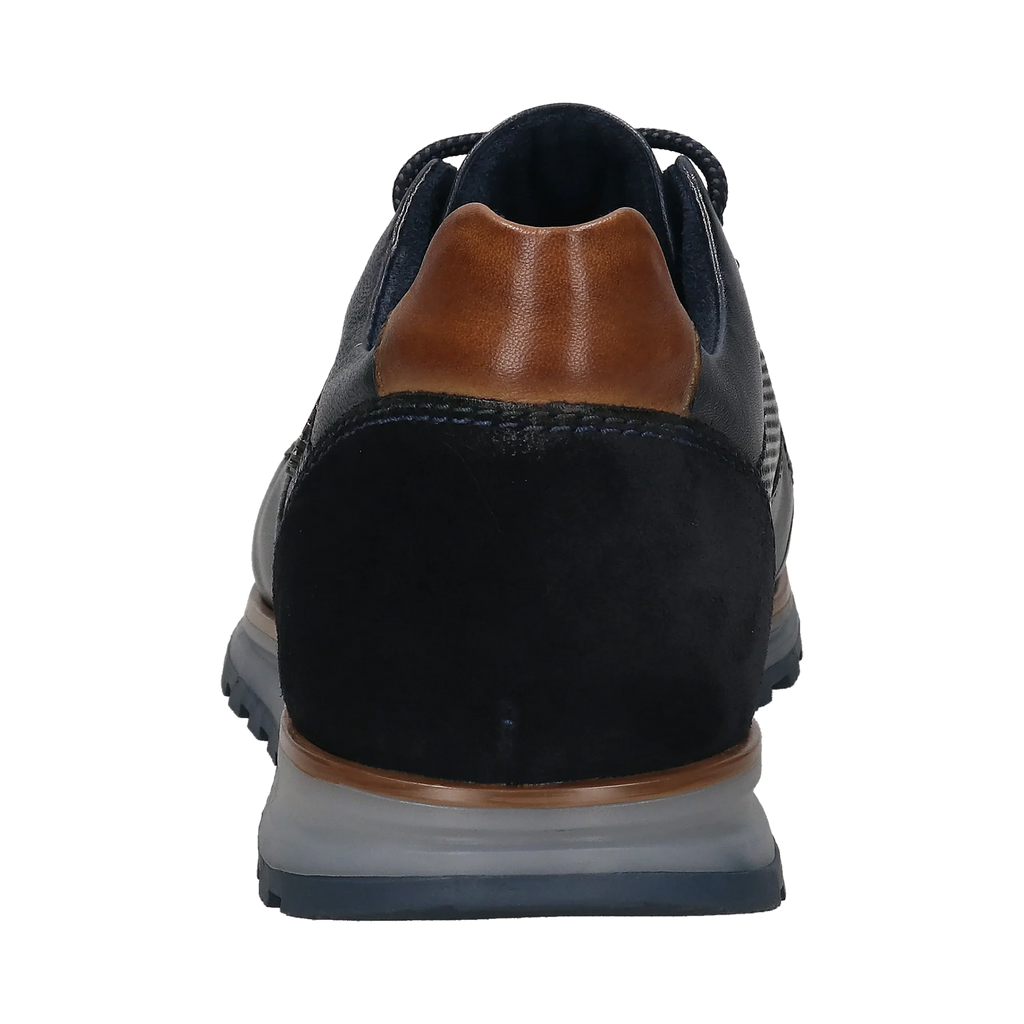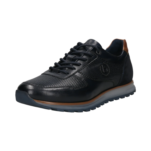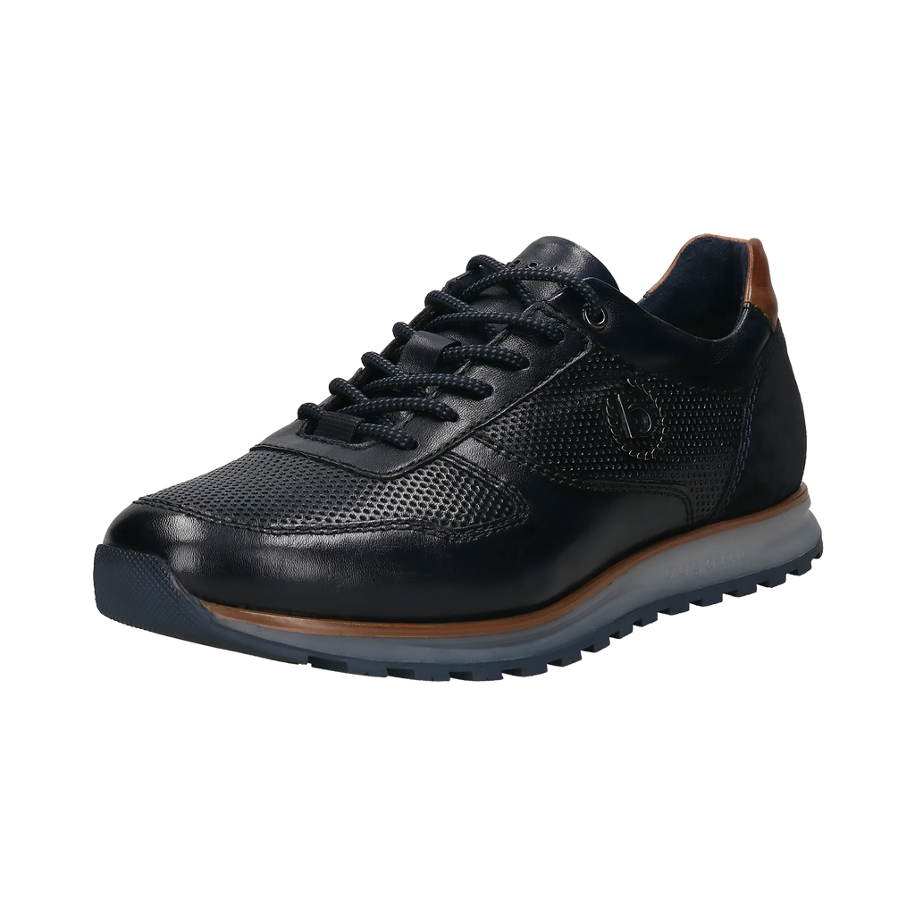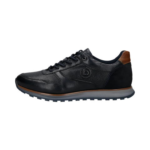 Enjoy the versatility of bugatti's leather sneakers, a stylish choice for a range of outfits. Crafted in blue color with a contrasting heel collar and a metallic logo, these sneakers effortlessly elevate your look. Whether you're pairing them with jeans or shirts, their soft insole ensures all-day comfort, making them the ideal addition to your wardrobe for any occasion.