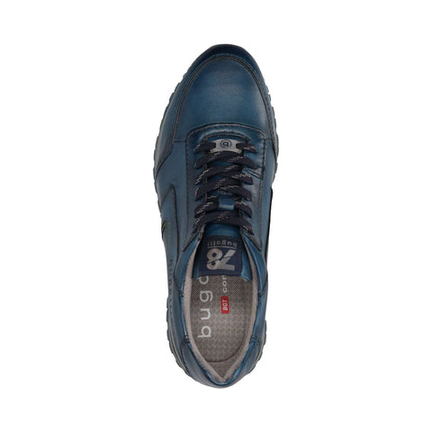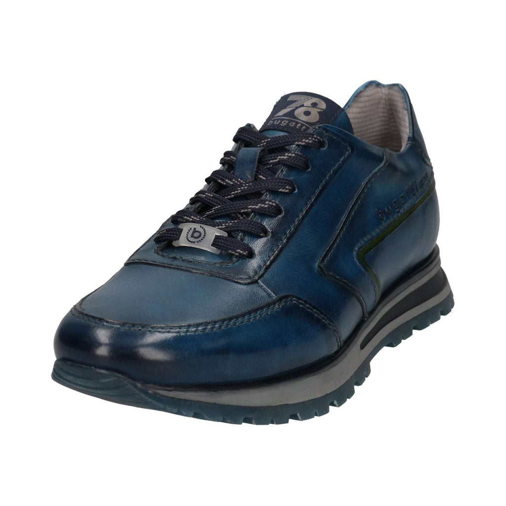 The Bugatti 331AG80440-Trainer features a blue leather upper, raised sole, and durable rubber sole. This combination of materials provides comfort, support, and durability for your feet.