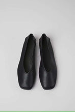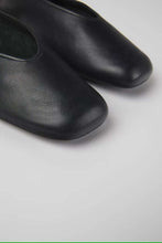 Black leather women's ballerina flats with OrthoLite© Recycled non-removable footbeds and TPU outsoles (20% recycled).