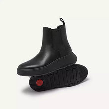 An elevated take on an icon. We've brought a closet staple up to date – setting a classic Chelsea boot upper on a superchunky (yet lightweight) sole. Clean. Contemporary. Crafted in smooth high-quality leather, with minimal seaming, and simple lines that complement almost any outfit. Thick stretch panels on both sides and pull tabs ensure easy on/off. Featuring a flatform-version of our Microwobbleboard™ midsole to deliver unbeatable all-day comfort (and a little extra height).