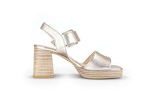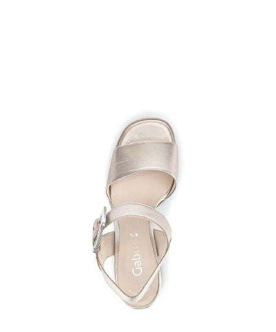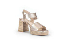 The Gabor 4478062-Sandal is a type of fashion footwear, crafted with effect leather and satin met. It features a chic puder color and a multicolor design, highlighting its BEST FITTING characteristic.