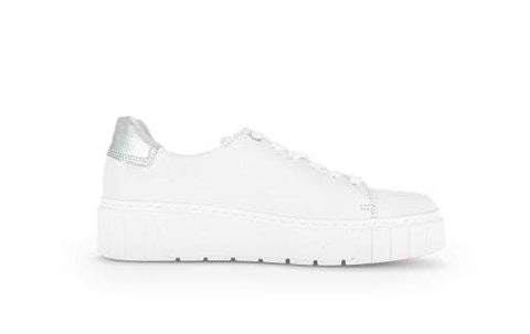 With a chunky and versatile aesthetic, these Gabor 4641052 Wide Fit Trainers are perfect for those who need extra room and comfort. The lace closure ensures a secure and comfortable fit, while the H width provides ample space. The white leather upper with a subtle pop of silver makes them a stylish addition to any outfit.