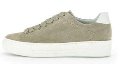 Introducing the Gabor 4646011- Wide Fit Trainer, a stylish and comfortable choice for your everyday activities. Made with a leather upper material in a unique schilf/creme(S.uni) green color combination, this trainer also features a COMFORT wide range and OPTIFIT reversible insole for maximum comfort. Upgrade your sneaker game with this expertly crafted design.