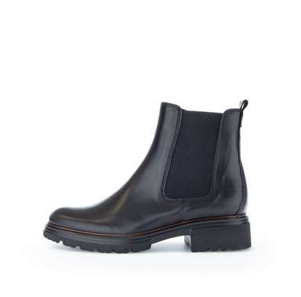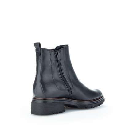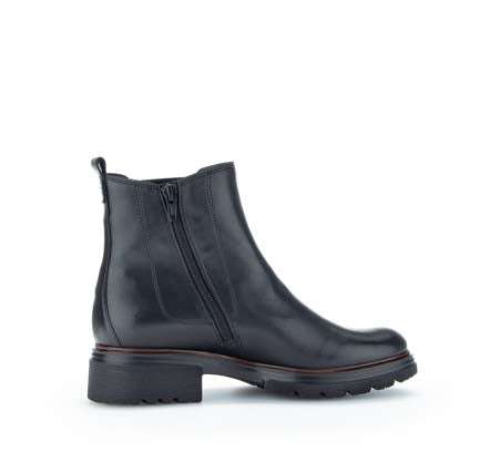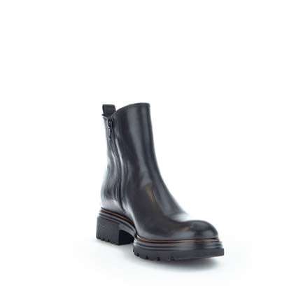 Black smooth leather combat style platform boots are cool and on trend. A zip fasten gives the boots easier on/off and keeps feet secure throughout the day, with an elasticated gusset and pull tab allowing for easy on & off. A cleated sole provides grip. These boots feature removable insoles which are ideal if custom orthotics are required. A 5cm block heel adds a touch of height. Here at Gabor Shoes Ireland we think these would look great with a straight legged jean for a trendy look.
