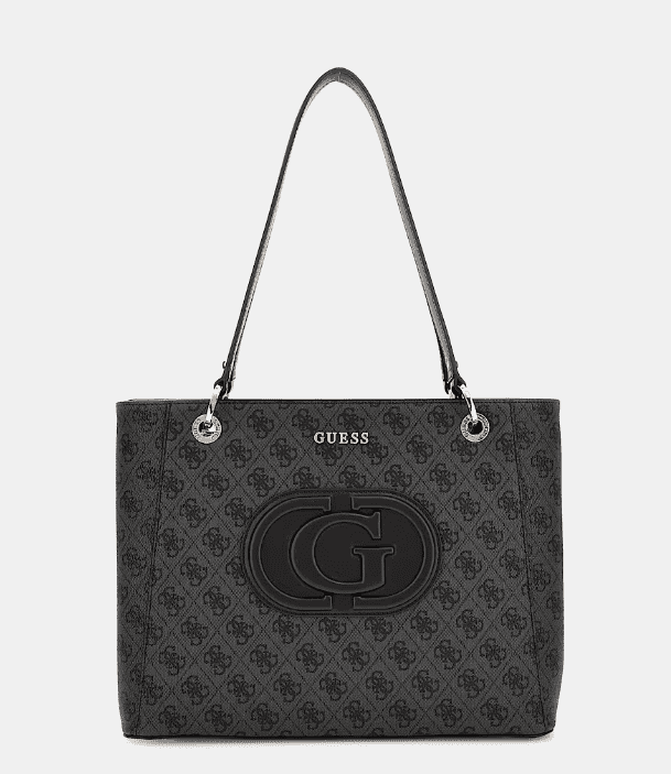 Expertly crafted with a faux leather outer and featuring a zip closure and pale gold hardware, the Guess Eco Tote is both stylish and functional. Keep your belongings organized with the internal zip pocket and add a touch of luxury with the 4G logo print and personalized logo lining. Complete with a Maxi G logo on the front and metal logo-script detail on the back, this tote is the perfect accessory for any outfit.