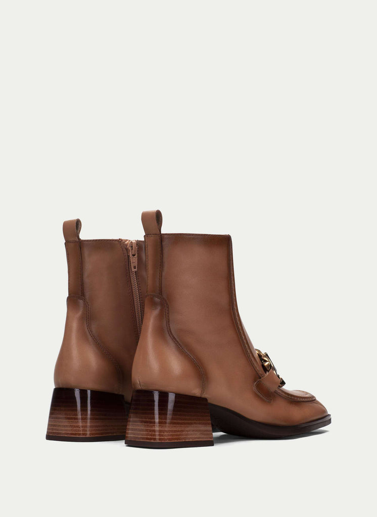 Leather ankle boot with block heel. Chain trimming with double "H" isotype on the instep and zip fastening on the inner side. This shoe incorporates TRIFLOW technology, cushions each step providing flexibility and comfort in the tread, thanks to its triple cushioning.