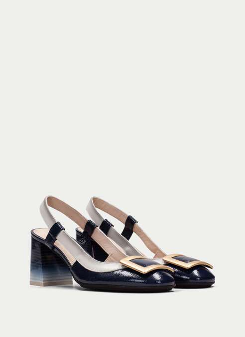 Round toe, flat shoes made from Nappa leather. Two-tone design, gradient-effect block heel and toe embellishment. This shoe incorporates TRIFLOW technology, which cushions each step providing flexibility and comfort, thanks to its triple cushioning.