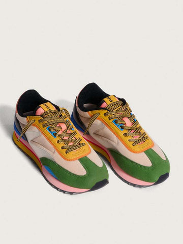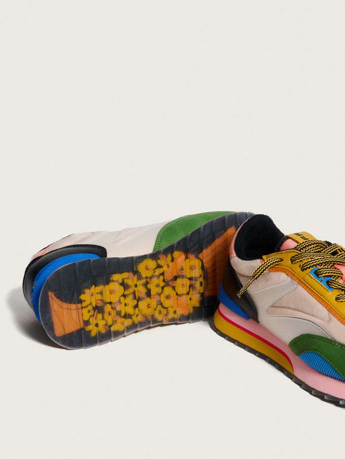 The combination of leather and nylon offers a unique aesthetic, while the sole with a pink and cream line adds a touch of distinctive style. These sneakers are ideal for an urban and modern look. Pair them with jeans and a shirt for a casually elegant style.