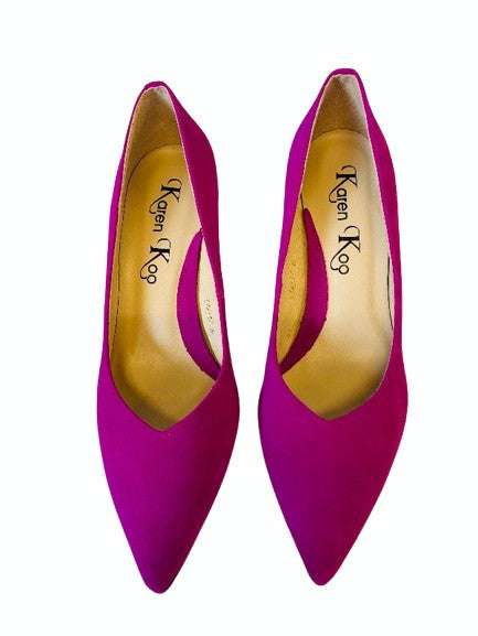 These Karen Koo heels features a beautiful suede upper with a sweetheart cut in front and a 3 inch heel.