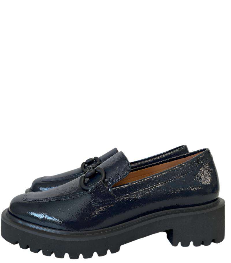 Update your wardrobe with the Karen Koo 71003BLU loafer. Expertly designed for comfort, this navy patent loafer features a versatile design and comfortable tractor sole. With a built-in arch support insole, enjoy all-day comfort while looking stylish with the black sole and buckle.