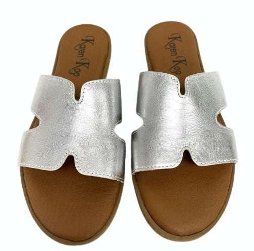 Gorgeous metallic silver shoe that looks great with both casual daytime wear and dressier evening wear. They are cool and comfortable for summer wear thanks to the leather upper and insole.