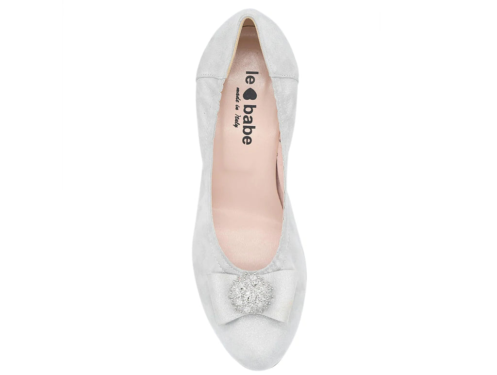 Le Babe high court shoe. Premium quality shimmering suede upper, leather linings and a soft footbed. Covered heel. These smart and sophisticated classic shoes are crafted to provide supreme support and stability. They feature an elasticated trim and a flexible sole. They have a striking jewel-embellished adornment. Classic, timeless and elegant.