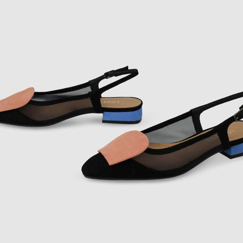 Made with a 2.5 cm heel. Side closure with metallic buckle and adjustable instep strap for a better fit. Pointed toe. Rounded neckline. Leather insole. Includes new gel insole for greater comfort with every step. Made in Spain.