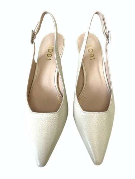 JUCO by LODI women¶ïs slingback pumpss in pale pink leather. With a side peak design and 7cm geometric heel. Leather-lined interior and buckle closure. square-shaped top. An essential that¶ïll go with all of your best looks. Plus a new gel sole for comfort in every step. Made in Spain.