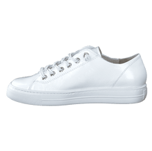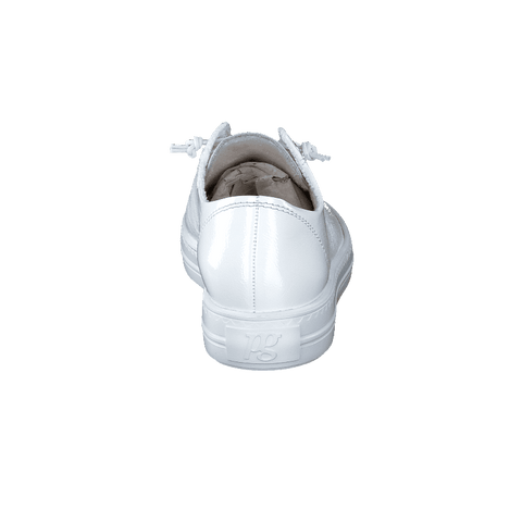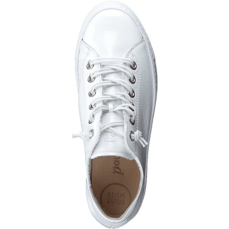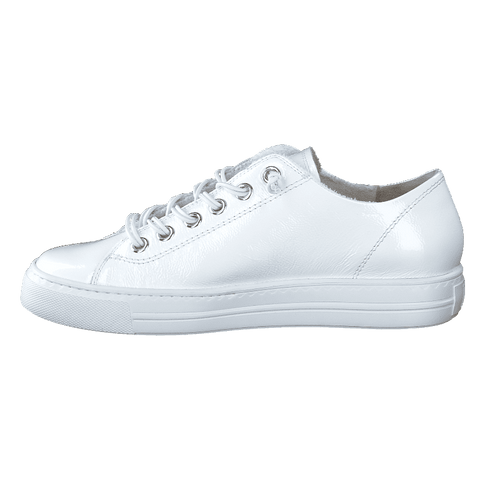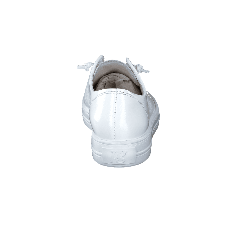 Look forward to this iconic sneaker made of white patent leather! Paul Green relies on a double rubber lacing for this model, which makes putting on a breeze and looks really stylish at the same time! The inner lining made of finest leather and terry cloth gives you a wearing pleasure of the most pleasant kind! Experience the all-rounder and enjoy casual look in white patent!