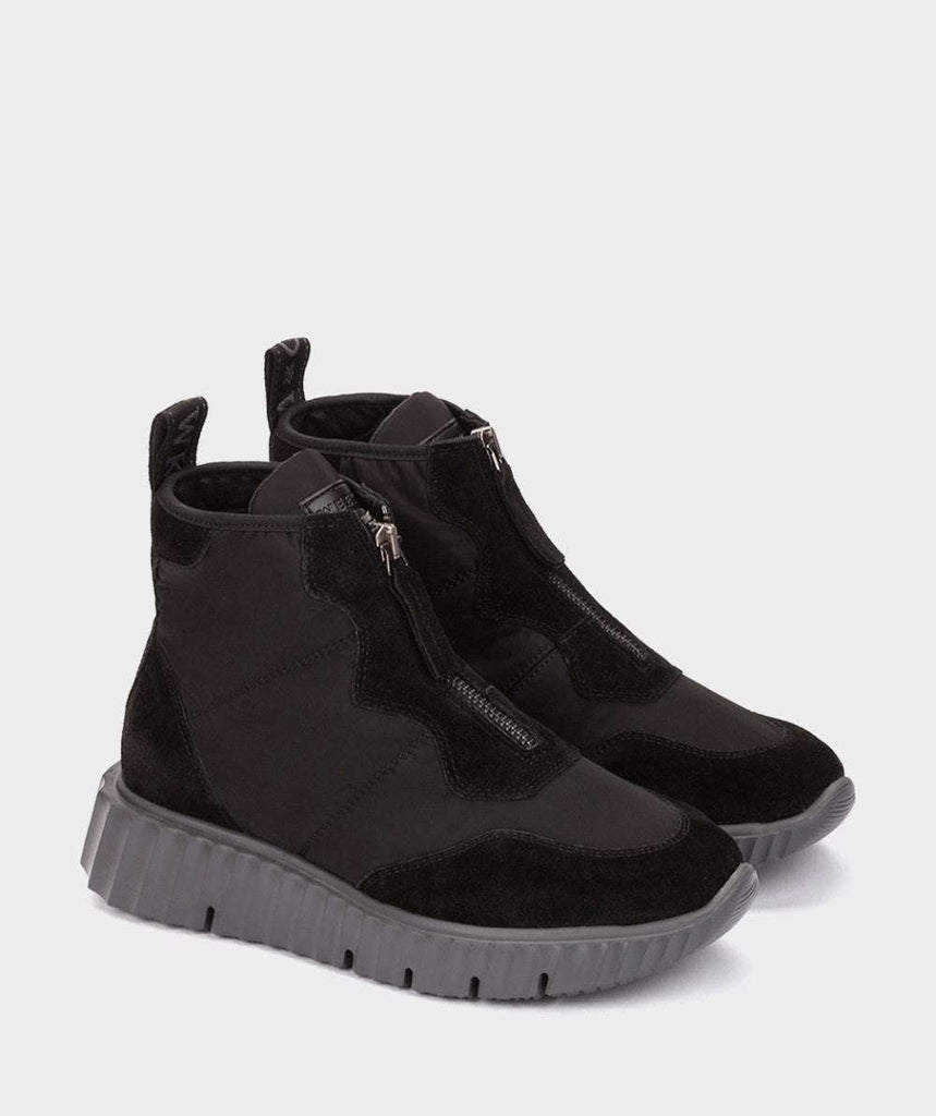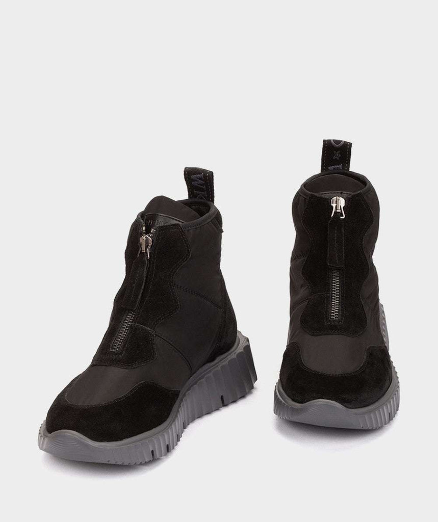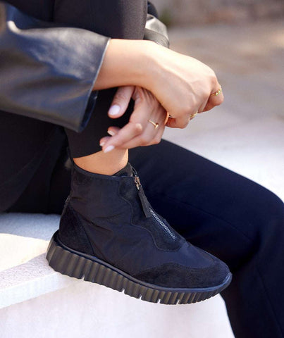 Trainers made of split leather and fabric in black. Simplicity and comfort for your feet, that's how we could define the KOLDING model. The detail of the zip closure makes it an easy model to put on, perfect for not wasting a minute when you are going out of the house. It has a removable insole