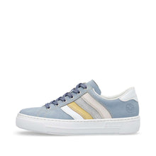 Rieker's L880210 trainer features a lace-up design, a width of F, a 34mm heel height, and a light Riricon-Sohle (LPU) sole. The lining is also included, and the insole is not removable.