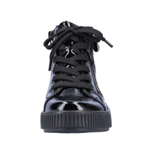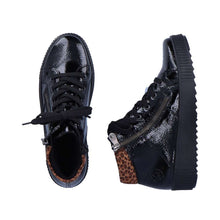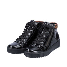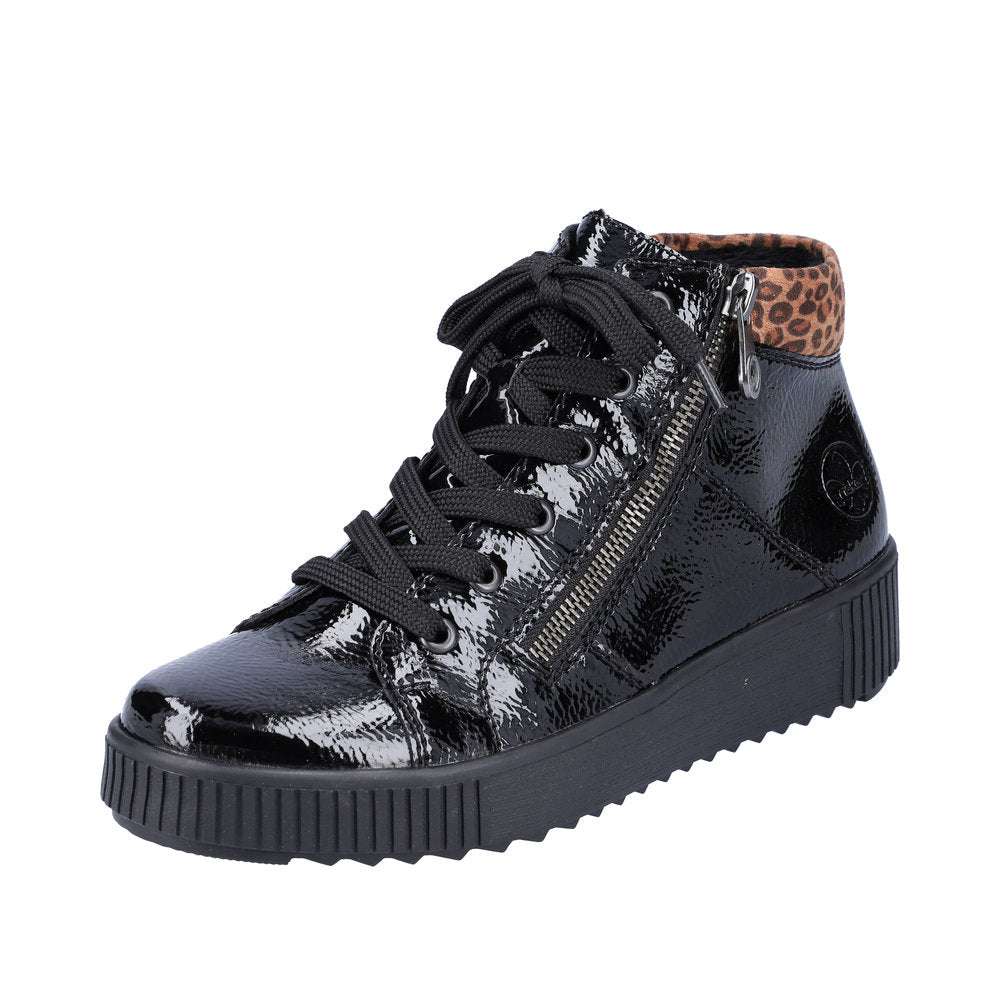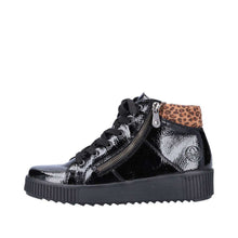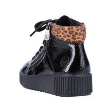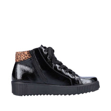 These patent black ankle boots have a pop of leopard print at the back, these are the perfect everyday casual boot.