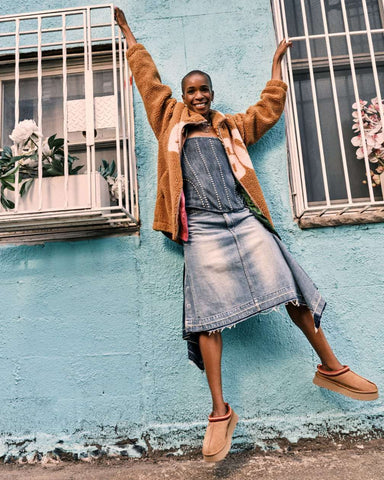 A maximalist take on the timeless Tasman, the Tazz refreshes the familiar silhouette with a 1.5" platform sole for boosted cushioning and style. Crafted from the same rich suede as the original, it's lined in our signature UGGplush™ wool blend for a slipper-like feel indoors or out. The outsole of this product is either a SugarSole™ outsole, which is a responsible compound using sugarcane foam that allows us to reduce dependency on fossil fuels by replacing petroleum-based ethylene, or a Treadlite by UGG™ outsole.