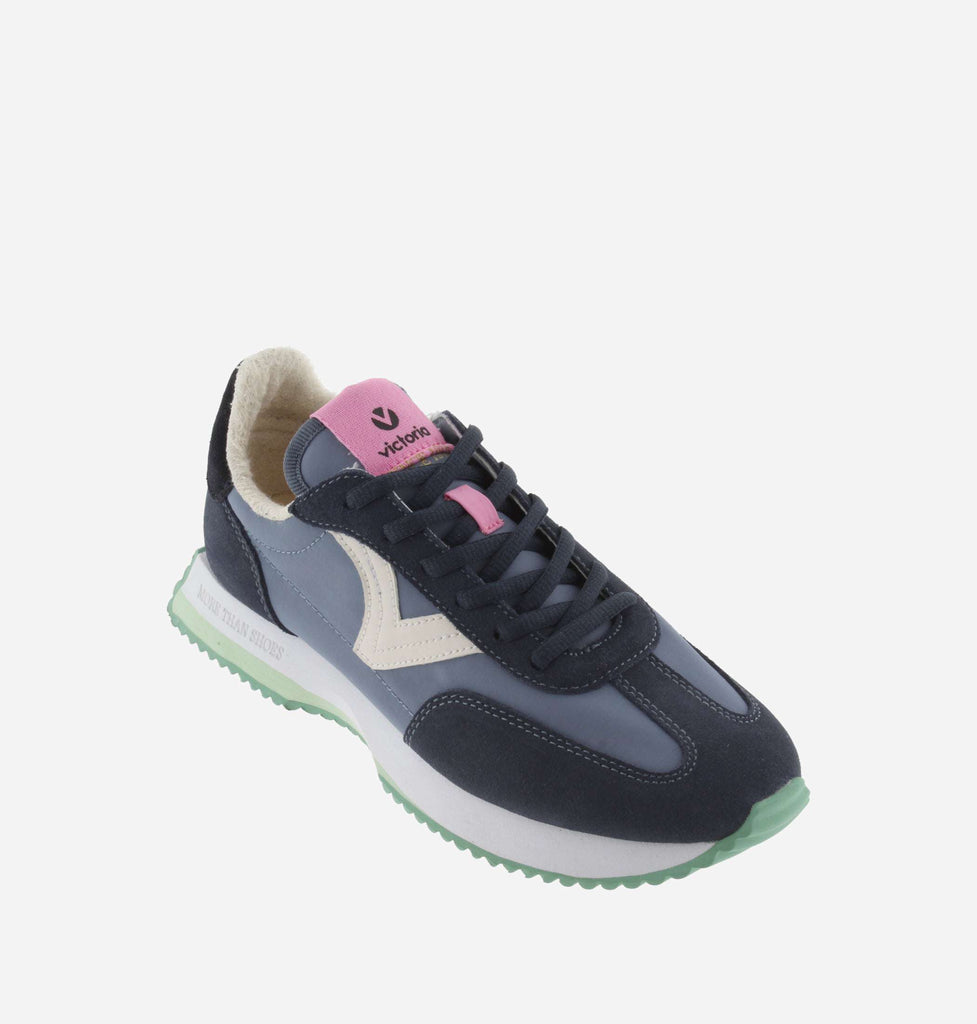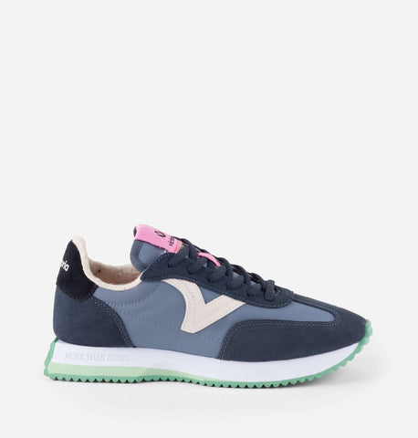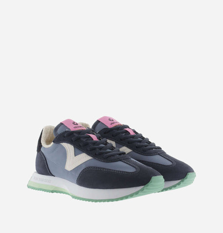 Women's sneakers crafted from soft nylon with faux leather details for style and durability. These shoes are ultra-lightweight and very comfortable, ideal for everyday wear. The two-tone sole and serrated tread in fluorescent tones add a dynamic and casual touch. Additionally, they feature a removable insole for enhanced comfort and versatility.